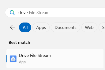 Step 1: type in on the search bar “drive file stream”